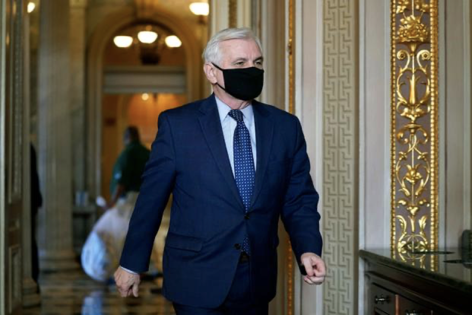 Sen. Jack Reed, D-R.I., arrives for the second impeachment trial of former President Donald Trump in the Senate, at the Capitol in Washington, Tuesday, Feb. 9, 2021. (AP Photo/Andrew Harnik)
